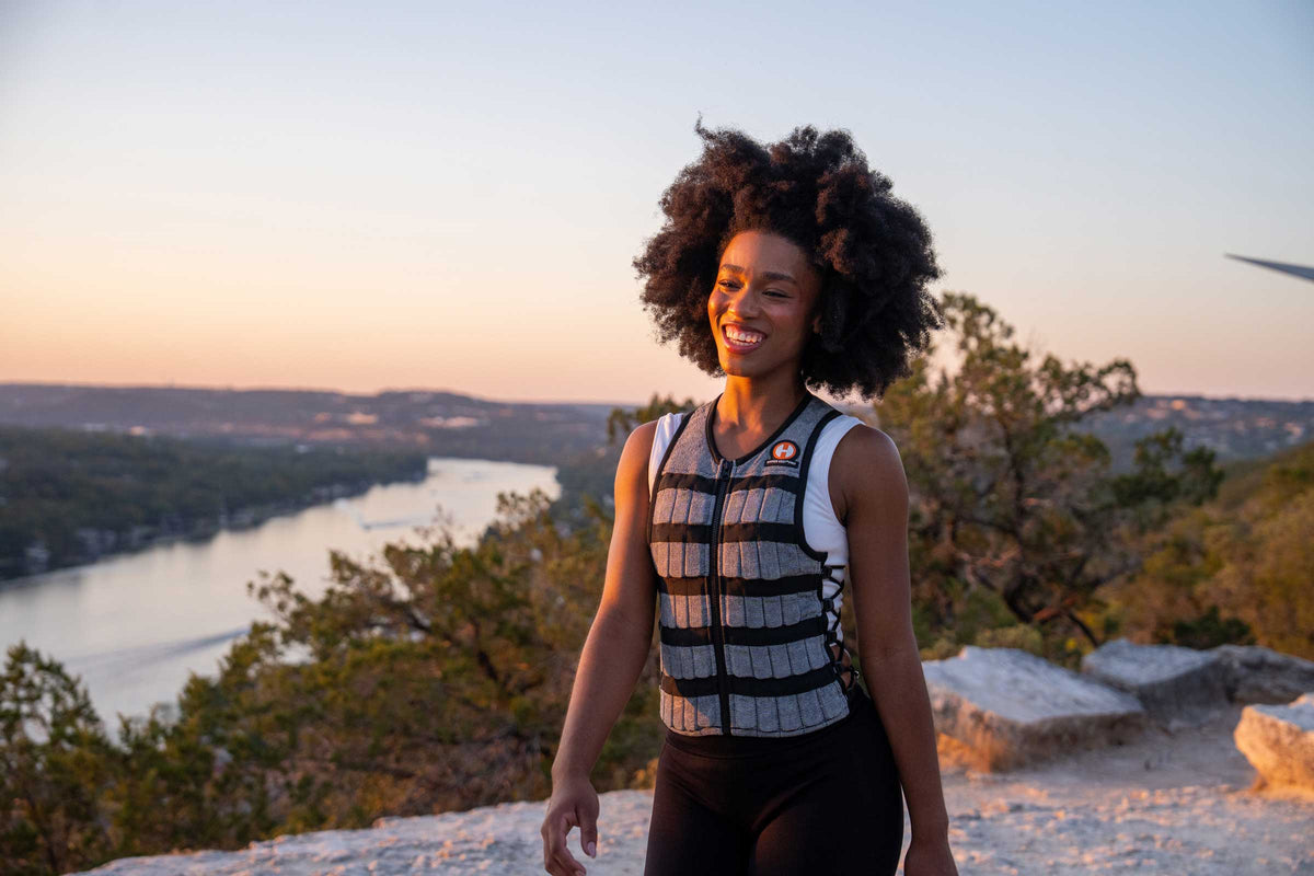 A balanced, form-fitting vest activates your core and improves posture with every step.